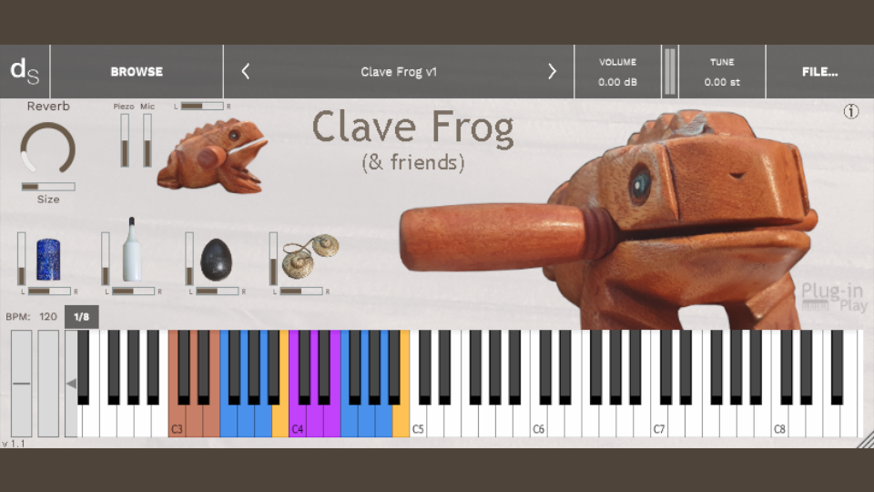 I also included single hits, as well as prayer chimes and (of course) the eponymous frog! All instruments have their own separate panning and volume controls, and there's a global reverb dial.